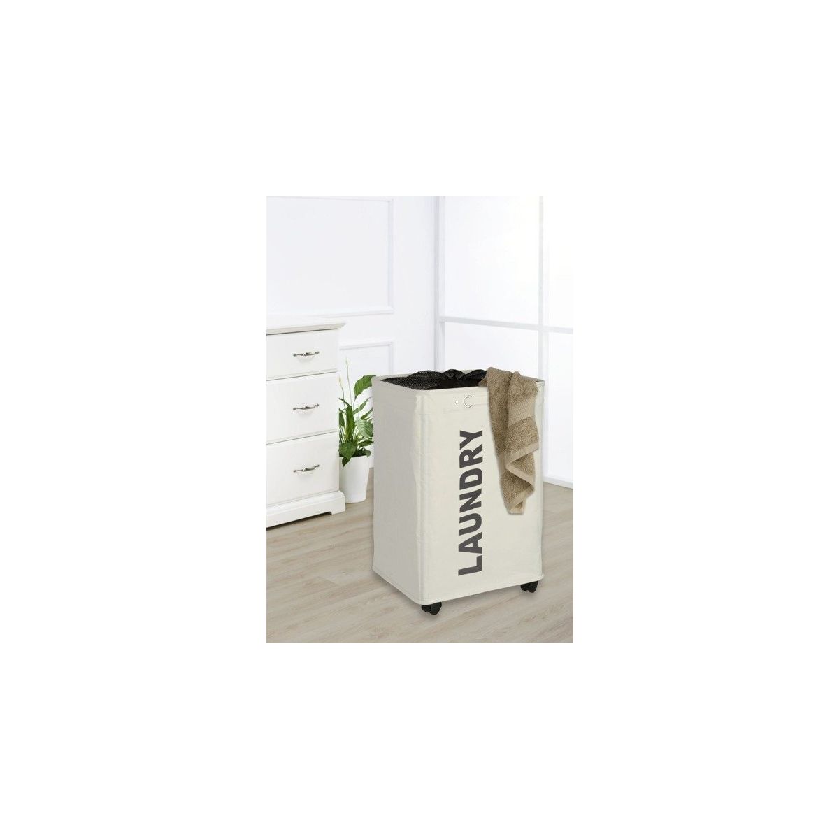 Der praktische Wäschebehälter ermöglicht die bequeme Aufbewahrung schmutziger Kleidung.