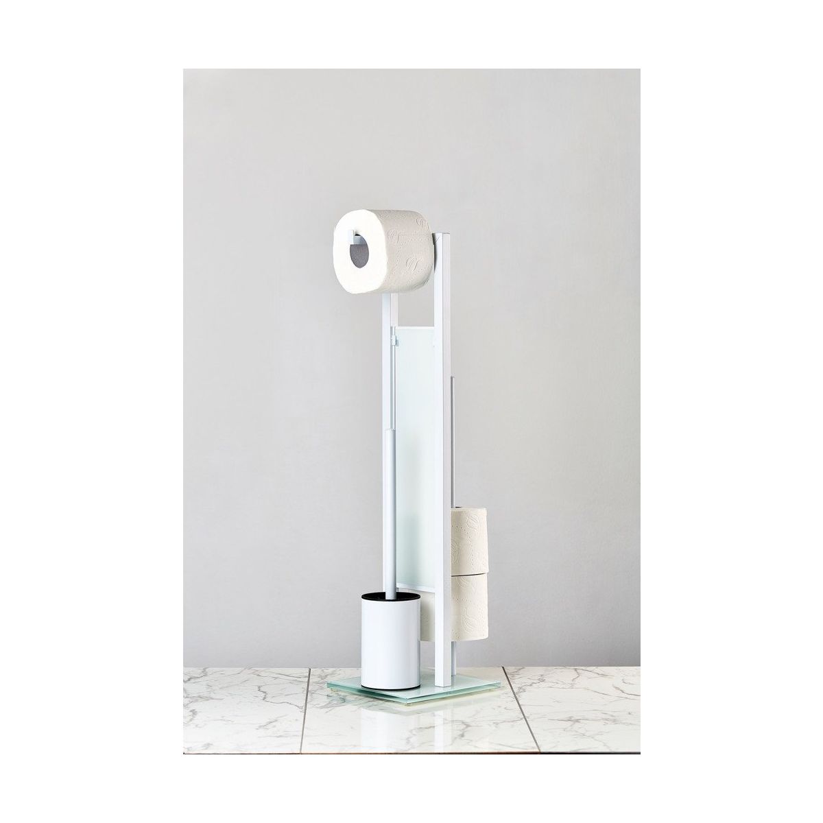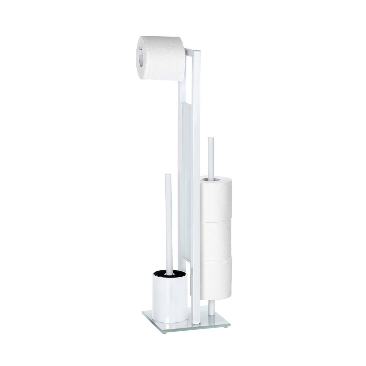 Der freistehende Badständer (3in1) verfügt über einen Toilettenpapierhalter, einen Halter zur Aufbewahrung von Rollen (bis zu 4 Stück) und eine Toilettenbürste. Hergestellt aus verchromtem Stahl. Der praktische Ständer ermöglicht es, Toilettenpapier und Bürste an einem Ort aufzubewahren.