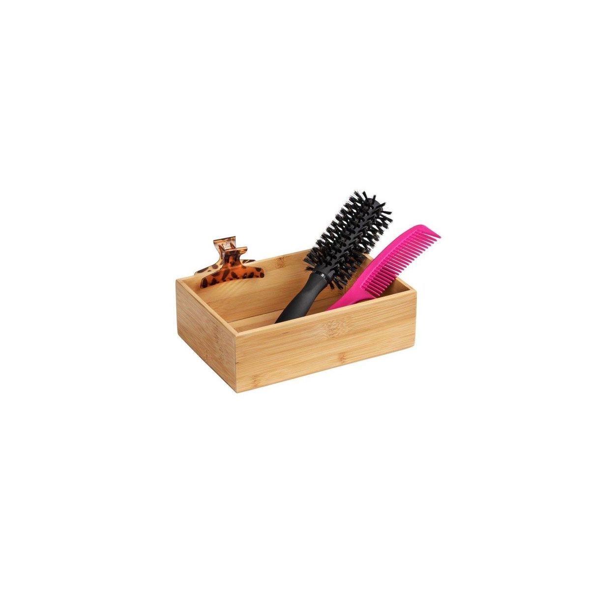 Der Behälter aus Bambus ermöglicht die Aufbewahrung von Badezimmerzubehör und kleinen Gegenständen. So bleibt Ihr Badezimmer stets aufgeräumt.