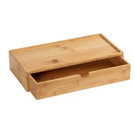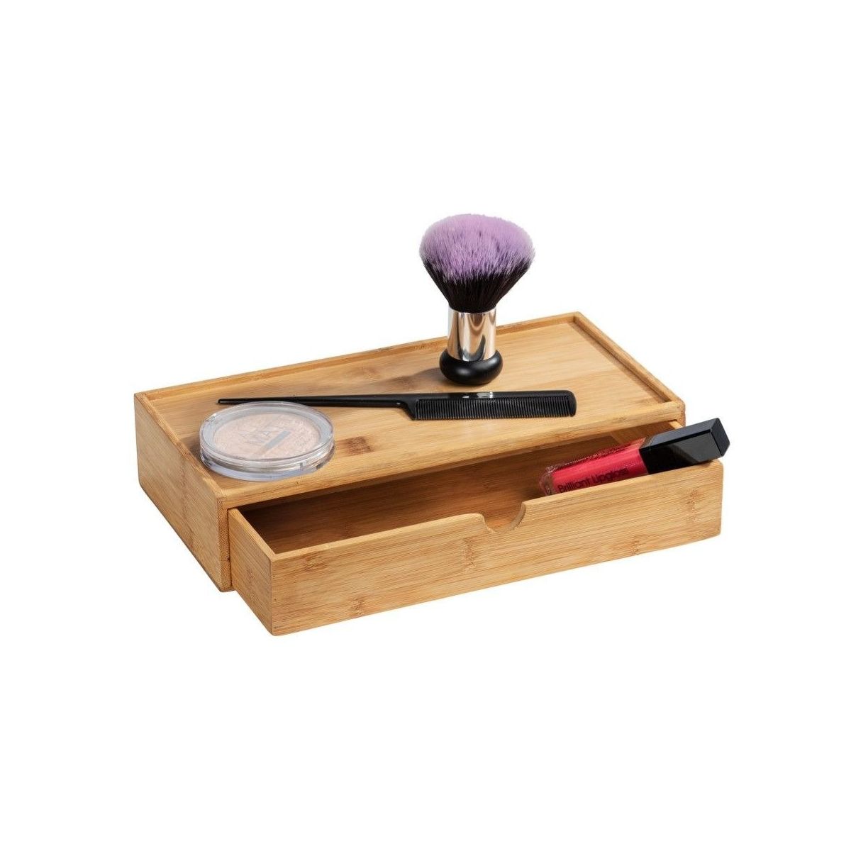Der Bambusbehälter mit herausziehbarer Schublade ermöglicht es Ihnen, kleine Badezimmeraccessoires an einem Ort zu sammeln.