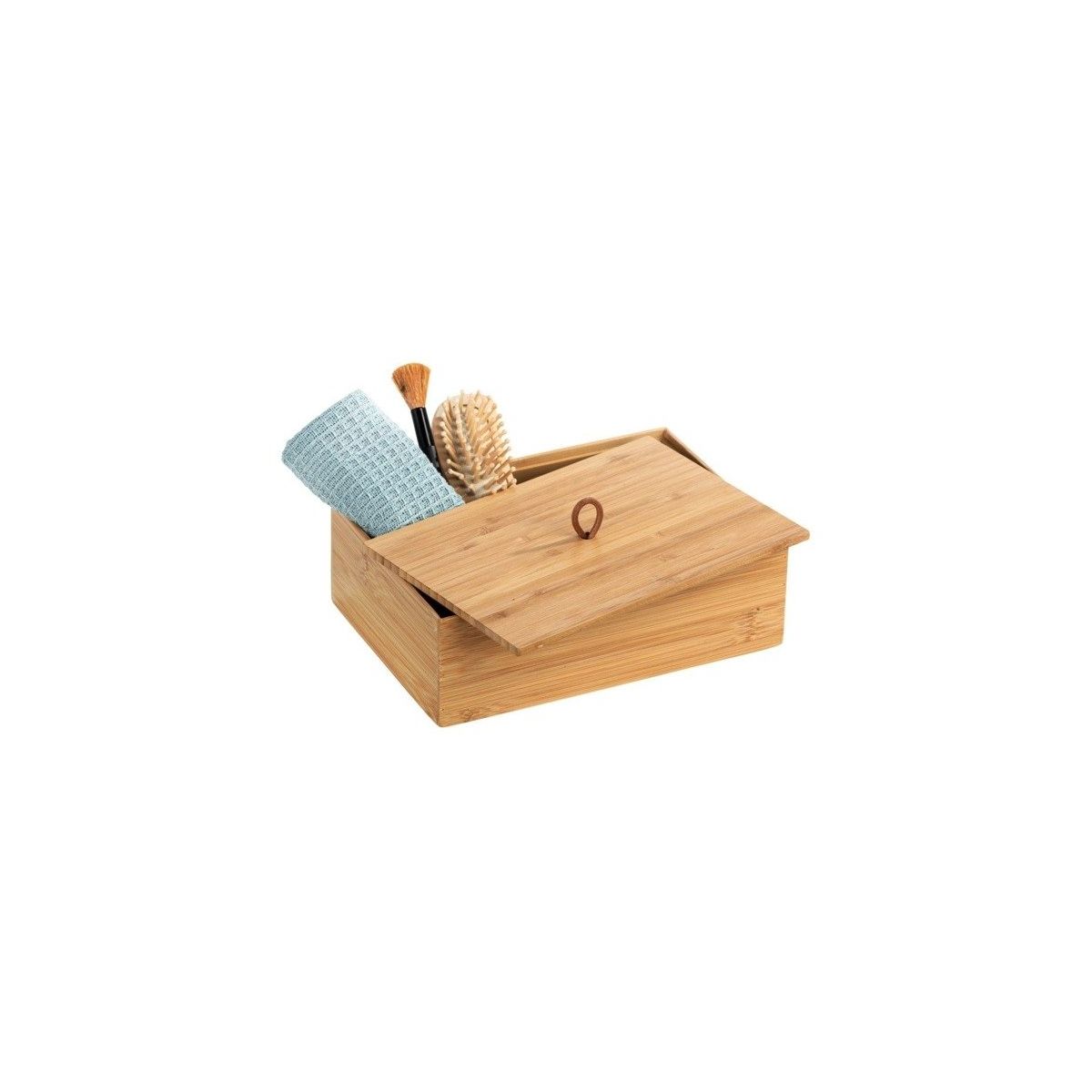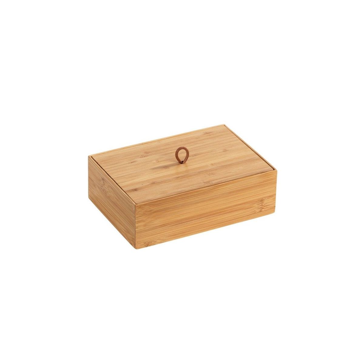 Der Bambusbehälter mit Deckel ermöglicht es Ihnen, kleine Badezimmeraccessoires an einem Ort aufzubewahren.
