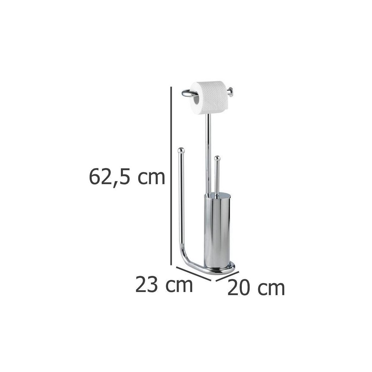 Der freistehende Badständer (3in1) verfügt über einen Toilettenpapierhalter, einen Halter zur Aufbewahrung von Rollen (bis zu 4 Stück) und eine Toilettenbürste. Der praktische Ständer ermöglicht es, Papier und Bürste an einem Ort aufzubewahren.
