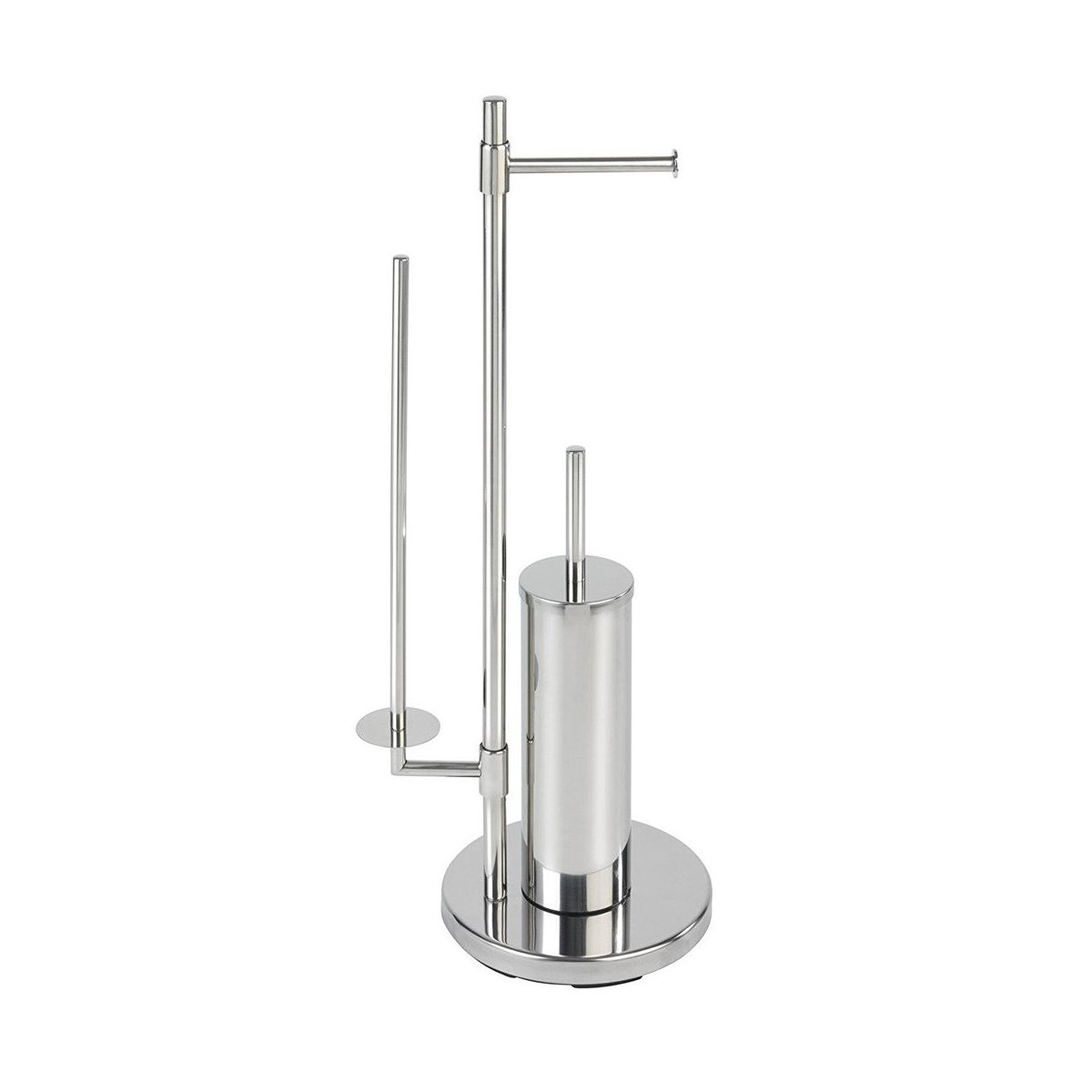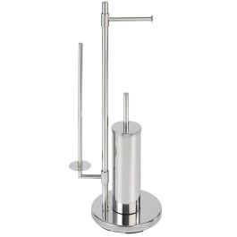 Der freistehende Badständer (3in1) verfügt über einen Toilettenpapierhalter, einen Halter zur Aufbewahrung von Rollen (bis zu 5 Stück) und eine Toilettenbürste. Hergestellt aus verchromtem Stahl. Der praktische Ständer ermöglicht es, Toilettenpapier und Bürste an einem Ort aufzubewahren.