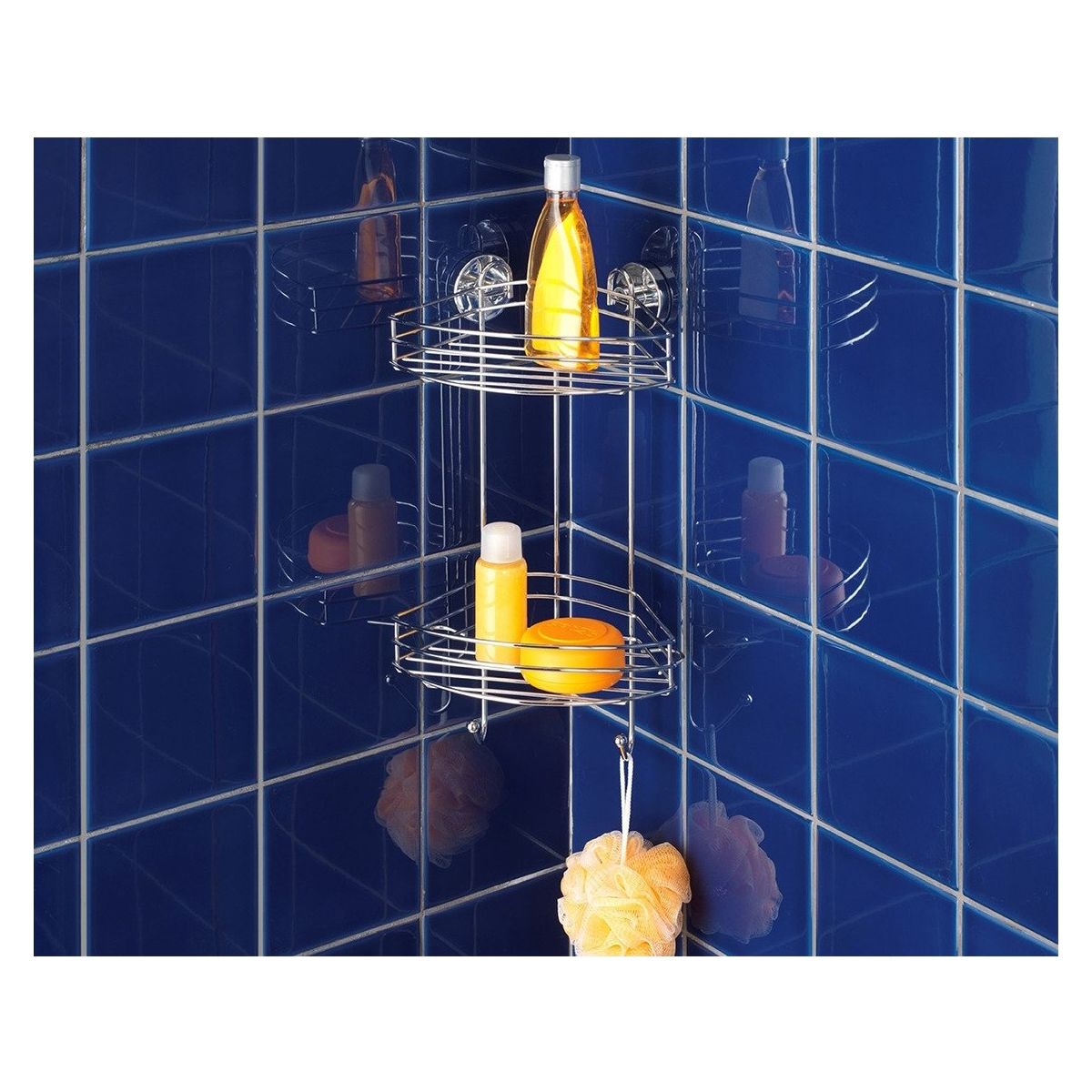 Das zweistufige Regal, das in der Dusche montiert wird, sorgt dafür, dass Sie alle notwendigen Pflegeprodukte immer griffbereit haben.