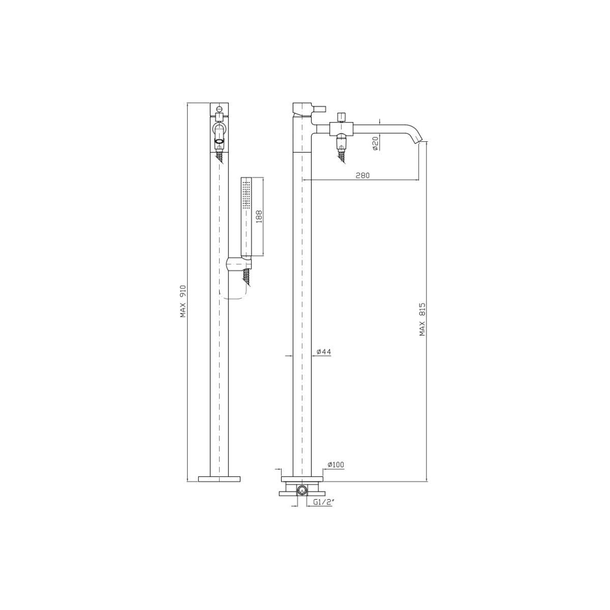 Zucchetti Pan Badewannen- und Duscharmatur freistehend schwarz ZP6622.C50