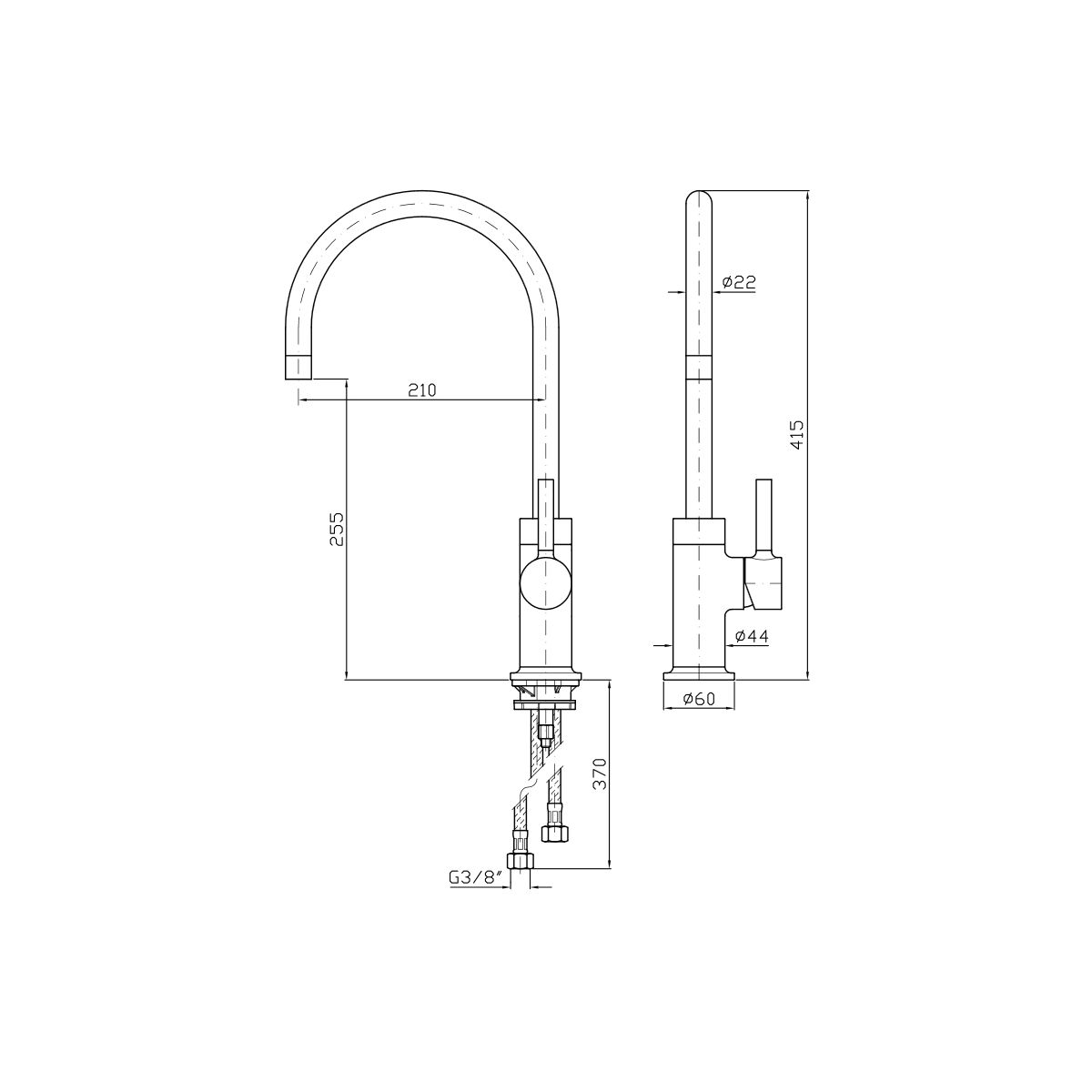 - Länge des Auslaufs: 210 mm