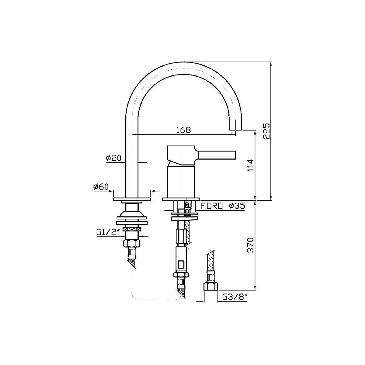 - Höhe der Armatur: 22,5 cm