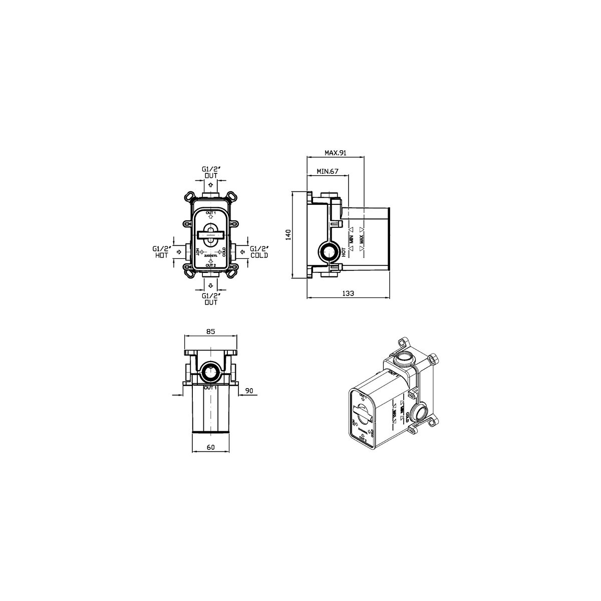 Zucchetti Verdecktes Wasserhahnelement R96715