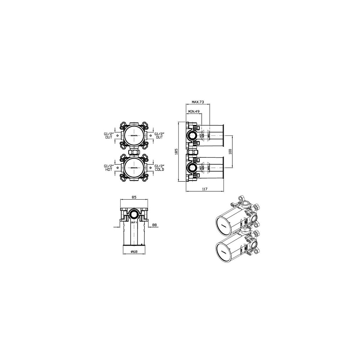 Zucchetti Verdecktes Wasserhahnelement R96725